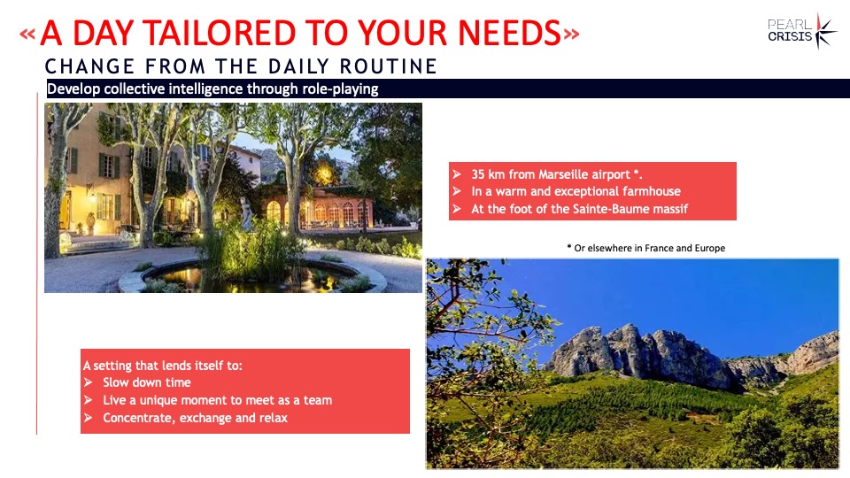 A crisis management exercise allowing the team to discover itself from another angle? A knowledge exchange. Negotiation techniques. The team must show its talents, its ability to listen, its empathy… to be more effective.